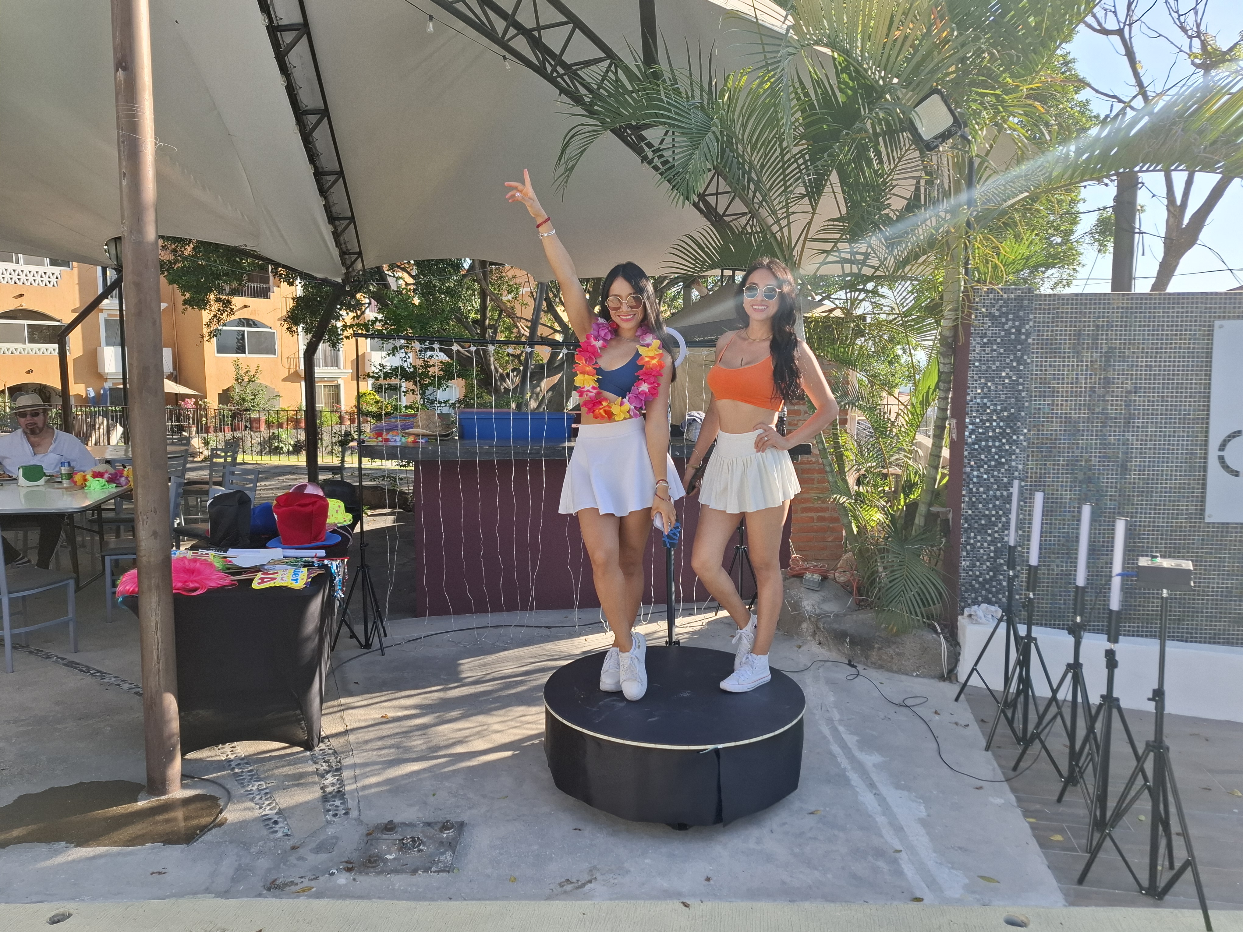 Nuestro servicio de la Cabina 360 es de $3,500.00 por 5 horas, en nuestro servicio llegamos antes de que comience su evento para tener todo preparado a la hora de llegada de sus invitados, podemos hacer las pausas cuando tienen sus bailes, brindis, etc. con nuestro servicio ya se encuentran incluidos videos ilimitados, y todos los accesorios como son sombreros, gorros, lentes, corbatas, burbujas, antifaces, pelucas, etc.